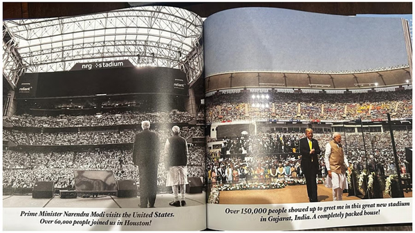 वॉशिंगटन. अमेरिकी राष्ट्रपति (US President) डोनाल्ड ट्रंप (Donald trump) ने 13 फरवरी को वाशिंगटन डीसी स्थित व्हाइट हाउस (White House) में प्रधानमंत्री (PM) नरेंद्र मोदी (Narendra Modi) से मुलाकात के दौरान उन्हें ‘अवर जर्नी टुगेदर’ (Our Journey Together) पुस्तक भेंट की। किताब में पीएम मोदी और ट्रंप की दोस्ती की पुरानी यादें संकलित हैं। इसमें ट्रंप के भारत दौरे की अहम यादें भी शामिल हैं। किताब में अमेरिकी राष्ट्रपति के भारत दौरे पर आयोजित किए गए ‘नमस्ते ट्रंप’ कार्यक्रम की शानदार तस्वीरें संजोई गईं हैं। किताब में ट्रंप और मेलानिया की भी तस्वीरें हैं, जब दोनों ने आगरा का दौरा किया था और ताज का दीदार किया था।