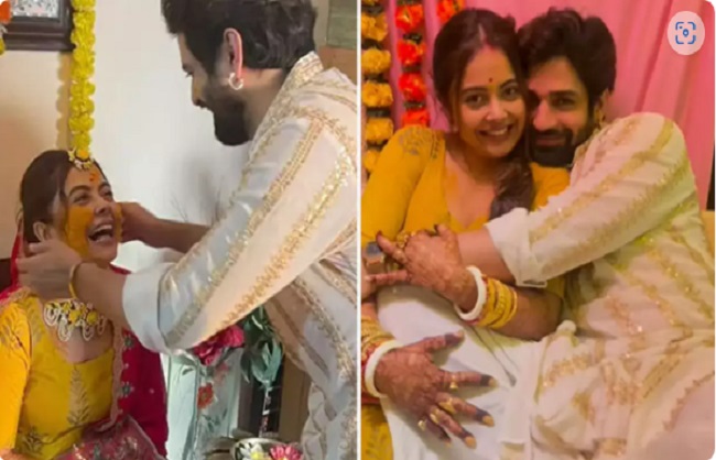 देवोलीना ने जो तस्वीरें शेयर की हैं, उनमें उनकी हल्दी और मेहंदी सेरेमनी हो रही है। हैरान करने वाली बात तो ये है कि देवोलीना भट्टाचार्जी के साथ इसमें उनके ऑनस्क्रीन देवर विशाल सिंह नजर आ रहे हैं, जिसे देखकर अंदाजा लगाया जा रहा है कि वे विशाल से ही शादी करने जा रही हैं। तस्वीरों में उनके चेहरे पर हल्दी लगी हुई है। हल्दी के अलावा देवोलीना के हाथ और पैरों में ब्राइडल मेहंदी भी लगी हुई दिखाई दे रही हैं। तस्वीरों में देवोलीना और विशाल बेहद खुश दिखाई दे रहे हैं।