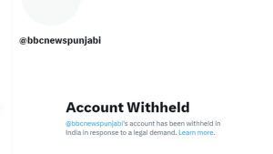 नई दिल्ली: ब्रिटिश ब्रॉडकॉस्टर कंपनी BBC न्यूज के पंजाबी भाषा के ट्विटर अकाउंट को ब्लॉक कर दिया गया है. मंगलवार को इंडिया से कानूनी मांग पर एक्शन लेते हुए माइक्रोब्लॉगिंग प्लेटफॉर्म ने बीबीसी पंजाबी का अकाउंट ब्लॉक किया है. पंजाबी चैनल के ट्विटर हैंडल पर ये जानकारी नजर आ रही है. बता दें कि खालिस्तान समर्थक और ‘वारिस पंजाब दे’ के चीफ अमृतपाल सिंह का मामला भी काफी गर्माया हुआ है. उसकी धरपकड़ के 10वें दिन यह कार्रवाई हुई है.