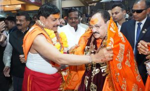 उज्जैन। मुख्यमंत्री (CM) डॉक्टर मोहन यादव (Mohan Yadav), भाजपा के राष्ट्रीय अधक्ष्य और केंद्रीय स्वास्थ्य मंत्री श्री जे पी नड्डा (JP Nadda), मध्य प्रदेश के प्रभारी श्री महेंद्र सिंह ने महाकाल मंदिर पहुंचकर बाबा महाकाल का पूजन दर्शन कर अभिषेक किया और देश की जनता की सुख, शांति, उन्नति की कामना की।
