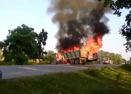 उमरिया। जिले के चंदिया थाना क्षेत्र में शुक्रवार को एक यात्री बस और डम्पर के बीच जोरदार भिड़ंत हो गई। हादसे के बाद दोनों वाहनों में आग लग गयी। बताया जा रहा है कि इस हादसे में एक दुधमुहे बच्चे की मौत हो गई, जबकि 20 यात्री घायल हो गए। सूचना मिलने पर पुलिस मौके पर पहुंची और घायलों को जिला अस्पताल पहुंचाया। पुलिस ने मामले को जांच में लिया है।
