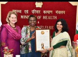 नई दिल्ली । यूएनएफपीए (UNFPA) ने मातृ मृत्यु दर कम करने के लिए (For reducing Maternal Mortality Rate) भारत को सम्मानित किया (Honored India) । यूएनएफपीए की कार्यकारी निदेशक, डॉ. नतालिया केनेम ने भारत में मातृ मृत्यु दर (एमएमआर) को 2000 से 2020 के बीच 70% कम करने के लिए केंद्रीय स्वास्थ्य सचिव, पुण्य सलीला श्रीवास्तव को प्रमाणपत्र और प्रतीक चिन्ह देकर सम्मानित किया ।