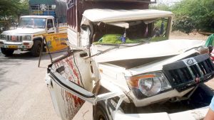 उज्जैन। कल रात इंदौर रोड पर डी मार्ट के समीप इंदौर से उज्जैन की ओर जा रहा लोडिंग डिवाईडर से टकरा गया और रैलिंग का सरिया आरपार होने से चालक की मौत हो गई। मृतक की पहचान उत्तरप्रदेश के सहारनपुर निवासी युवक के रूप में हुई। पुलिस की सूचना पर आज सुबह उसके परिजन यहां पहुँच गए थे। मृतक प्लाई खरीदने इंदौर गया था। आज सुबह शव का पोस्ट मार्टम कराया गया। नानाखेड़ा थाना पुलिस ने बताया कि कल रात डी मार्ट के समीप तेज गति से आया बोलेरो पिकअप वाहन डिवाईडर में जा घुसा और उछलकर स्वीफ्ट कार से टकरा गया। दुर्घटना में डिवाईडर की रैलिंग का सरिया चालक की गर्दन के आरपार हो गया और उसकी वहीं मौत हो गई।