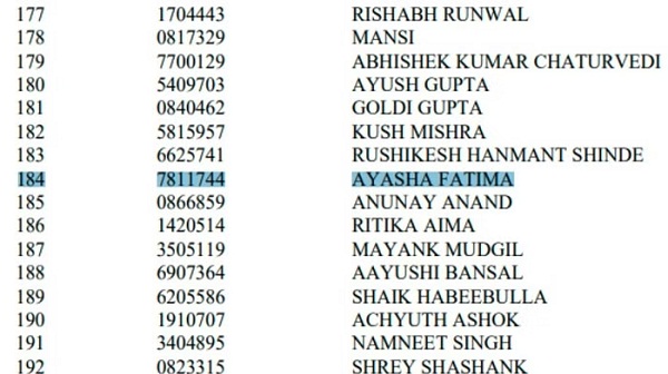बता दें कि मंगलवार को आए परिणाम (Result) के बाद आयशा (Ayesha) नाम की युवती को 184वीं रैंक मिली है। इसके बाद दो परिवारों में जश्न मनने लगा। एक परिवार देवास का है, जिसमें आयशा फातिमा पिता नजीरुद्दीन को 184वीं रैंक मिली है। दूसरा परिवार आलीराजपुर जिले की आयशा मकरानी पिता सलीमुद्दीन का है, जिसे भी 184वीं रैंक मिली है। दोनों का रोल नंबर एक होने से गफलत बनी है। एडमिट कार्ड में एक ही रोल नंबर 7811744 दर्ज है। दोनों को एक ही रोल नंबर जारी होना बड़ा सवाल है, यहीं से एक मामले में झोल होने की आशंका लग रही है। बहरहाल दोनों का ही दावा है कि उन्होंने परीक्षा दी है, इंटरव्यू देने के प्रमाण भी होने का दावा दोनों की तरफ से किया जा रहा है।