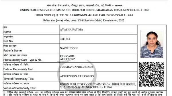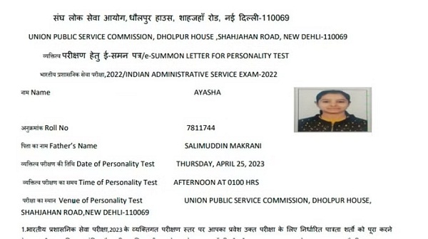 दूसरा ये भी है कि देवास वाली आयशा का एडमिट कार्ड पर यूपीएससी का वाटर मार्क भी है। जबकि आलीराजपुर वाली आयशा का एडमिट कार्ड सादे कागज पर प्रिंट आउट जैसा लग रहा है।