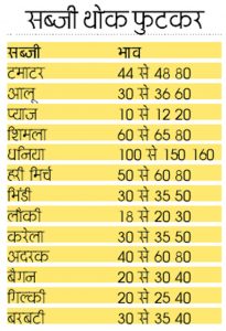 महंगी होती सब्जियों के बीच फुटकर विक्रेताओं द्वारा लोगों की मजबूरी का जमकर फायदा उठाया जा रहा है। थोक रेट में टमाटर 1100 से 1200 रुपये प्रति कैरेट बिका। एक कैरेट में 25 किलो टमाटर रहता है। इस हिसाब से एक किलो टमाटर 44 से 48 रुपये किलो में थोक बाजार से फुटकर व्यापारियों ने प्राप्त किया जिसे बाजार में 80 रुपये तक दोगुने दाम में बेचा जा रहा है। इसी तरह आलू थोक में 30 से 36 रुपये प्रतिकिलो मिल रहा है जिसे फुटकर व्यापारी 50 से 60 रुपये किलो तक बेच कर लोगों को चूना लगा रहे हैं।