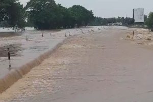 हैदराबाद और विजयवाड़ा के बीच हाईवे पर बाढ़ आने के कारण रुक गया वाहनों का आवागमन