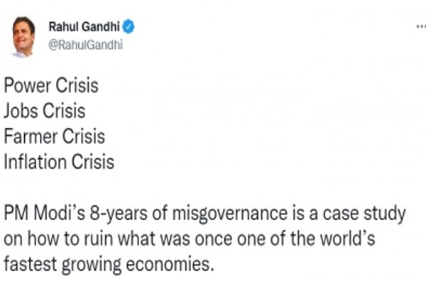 • प्रधानमंत्री मोदी का 8 साल का 'कुशासन' अर्थव्यवस्था को कैसे बर्बाद किया जाए, इस पर केस स्टडी : राहुल गांधी