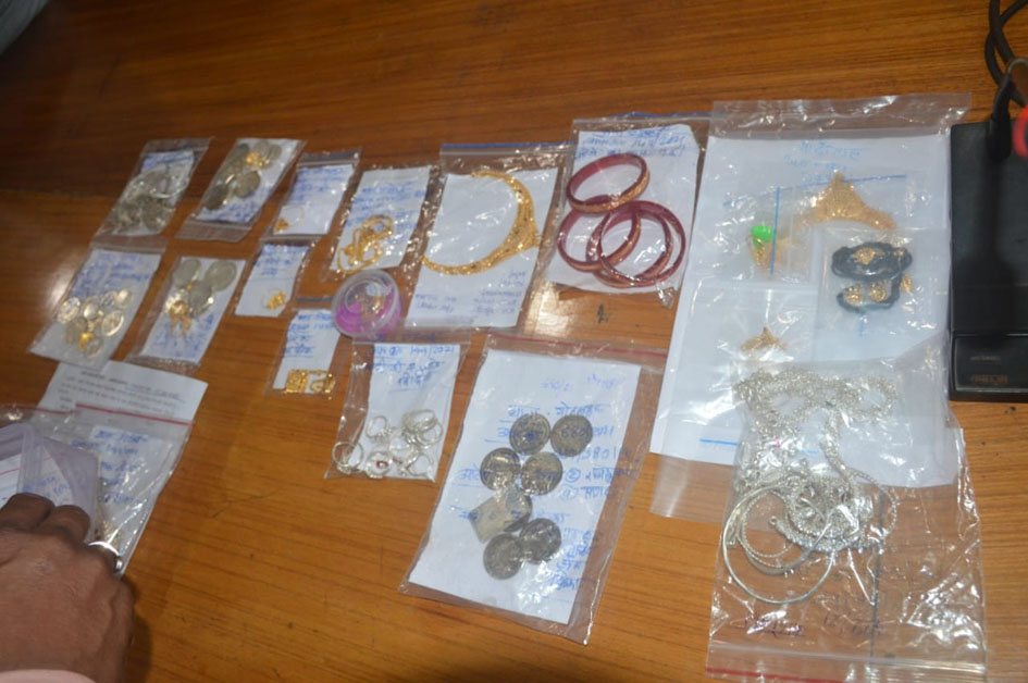 पुलिस ने चारों आरोपियों को हिरासत में लेकर उनकी निशानदेही पर चुराये हुए सोने के 3 सिक्कें, 2 हार, 1 चेन, 5 अंगूठी, 6 चूड़ी, 1 मंगलसूत्र, 1 जोड़ झुमकी, बेंदी, नथ तथा डेढ़ किलो चांदी के जेवर, जिसमें पायल, सिक्के सहित चोरी के रुपयों से खरीदी गई एक अल्टो कार बरामद की है। आरोपियों को पकडऩे में गोहलपुर टीआई आरके गौतम, माढ़ोताल टीआई रीना पांडे शर्मा, क्राईम ब्रांच के एसआई राजेश शुक्ला, प्रआर. सुग्रीव तिवारी, आरक्षक सादिक, अजय यादव, जितेन्द्र दुबे व गोहलपुर थाने के एसआई लवकेश साकेत, एएसआई निलाम्बर त्रिपाठी, विनोद सुरकेल, प्रआर. अंदेश, राजा भैया, आरक्षक आशीष तिवारी सहित अन्य की सराहनीय भूमिका रहीं।