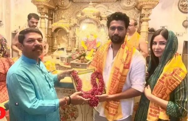 मुंबई (Mumbai)। राजस्थान (Rajsthan) में नये साल का जश्न (new year celebration) मना कर हाल ही में मुंबई लौटे बॉलीवुड के फेमस सेलिब्रिटी कपल्स (famous celebrity couples of bollywood) में से एक विक्की कौशल और कैटरीना कैफ (Vicky Kaushal and Katrina Kaif) ने सिद्धिविनायक मंदिर (Siddhivinayak Temple) में हाजिरी लगाई। उनके साथ विक्की की मां वीना कौशल भी मौजूद थीं। दोनों की तस्वीरें सोशल मीडिया पर छाईं हुईं हैं।