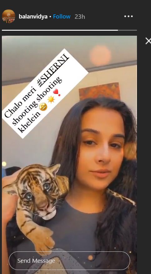 बॉलीवुड अभिनेत्री विद्या बालन ने अपनी फिल्म ‘शेरनी’ की शूटिंग फिर से शुरू कर दी है। कोरोना के कारण इस फिल्म की शूटिंग मार्च के मध्य में रुक गई थी। विद्या बालन ने मध्यप्रदेश में फिल्म की शूटिंग शुरू करने के लिए सेट पर पूजा की। आवश्यक सुरक्षा प्रोटोकॉल के साथ विद्या बालन ने मध्य प्रदेश में ‘शेरनी’ के लिए शूटिंग शुरू कर दी है। विद्या बालन ने बुधवार को इंस्टाग्राम स्टोरी पर यह जानकारी दी। विद्या बालन ने इंस्टाग्राम स्टोरी पर एक मजेदार वीडियो शेयर कर लिखा-‘चलो मेरी शेरनी शूटिंग शूटिंग खेले।’फिल्म की शूटिंग से पहले अभिनेत्री विद्या बालन की पूजा करने वाली तस्वीरें सोशल मीडिया पर वायरल हो रही है। तस्वीर में विद्या काले रंग की टीशर्ट पहनी है और मास्क लगाई हुई है। फिल्म ‘शेरनी’ में अभिनेत्री विद्या बालन फॉरेंट ऑफिसर की भूमिका में हैं। अमित मसुरकर द्वारा निर्देशित इस फिल्म की शूटिंग मध्य प्रदेश के जंगलों में होगी। फिल्म को विक्रम मल्होत्रा (अबुंदंतिया एंटरटेनमेंट) द्वारा निर्मित किया गया है।