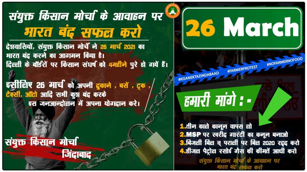 • कृषि कानूनों के खिलाफ किसानों का भारत बंद कल