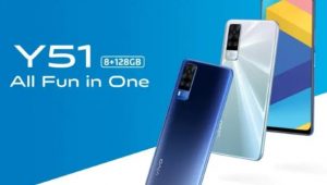 Vivo स्मार्टफोन कंपनी ने भारत में अपना नया स्मार्टफोन Vivo Y51 को शानदार फीचर्स के साथ लांच कर दिया गया है । Vivo Y51 हैंडसेट को पिछले हफ्ते ही इंडोनेशिया में सबसे पहले पेश किया गया था। वीवो के इस लेटेस्ट फोन में 8GB रैम व 128GB स्टोरेज दी गई है। Vivo Y51 में 5000mAh बैटरी हैं। देश में इस फोन को 20 हजार रुपये से कम वाली कैटिगरी में उपलब्ध कराया गया है।