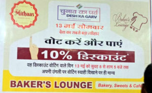 उज्जैन। आज 13 मई को लोकसभा चुनाव के मतदान में मतदान करने पर मतदाताओं के लिए उज्जैन के प्रतिष्ठान और होटलों पर ऑफरों की भरमार लग गई है।
