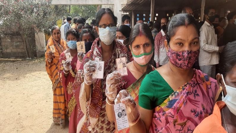 पश्चिम बंगाल विधानसभा चुनाव के आठवें और अंतिम चरण के लिए मतदान शुरू हो गए हैं. मतदान केंद्रों पर लोग वोट डालने के लिए अपनी बारी का इंतजार करते हुए.