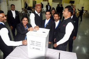 उज्जैन। मंडल अभिभाषक संघ के चुनाव हेतु कोठी परिसर में तैयार किए गए बूथों पर आज सुबह से मतदान शुरू हो गया। कुल 1374 अभिभाषक इस बार प्रत्याशियों के चयन हेतु वोटिंग करेंगे। चुनाव में अध्यक्ष, उपाध्यक्ष सहित 15 प्रत्याशियों के भाग्य का फैसला आज शाम तक हो जाएगा। मंडल अभिभाषक संघ उज्जैन के चुनाव हेतु आज सुबह से कोठी पैलेस पर वोटिंग शुरू हो गई है। यहां वोटिंग के लिए अलग-अलग बूथ बनाए गए हैं और सीसीटीवी कैमरों की निगरानी में उम्मीदवारों के चयन के लिए अभिभाषक वोट डालने पहुंच रहे हैं। मुख्य निर्वाचन अधिकारी गोविंद गुरु के मुताबिक चुनाव में 1374 अभिभाषक वोट कर सकेंगे। आज मतदाता अभिभाषक कुल 15 उम्मीदवारों को चुनने के लिए निर्धारित समय तक वोटिंग करेंगे। इस बार अध्यक्ष पद पर अभिभाषक अशोक यादव, प्रमोद चौबे और सुरेन्द्र चतुर्वेदी के बीच त्रिकोणीय मुकाबला है।