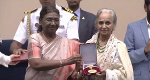 नई दिल्ली । राष्ट्रपति द्रौपदी मूर्मू ने (By President Draupadi Murmu) वहीदा रहमान (Waheeda Rehman) को दादा साहब फाल्के (With Dadasaheb Phalke), अल्लू अर्जुन-आलिया भट्ट (Allu Arjun-Alia Bhatt) को सर्वश्रेष्ठ अभिनेता-अभिनेत्री पुरस्कार से (With Best Actor-Actress Award) सम्मानित किया (Honored) ।