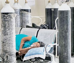 अहाते में ही ऑक्सीजन सिलेंडर, बेड के लिए कतार
