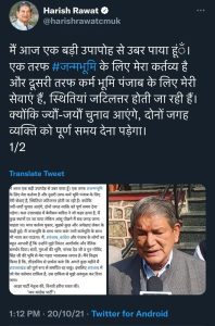 मैं जन्मभूमि के साथ न्याय करूं, तभी कर्मभूमि के साथ भी न्याय कर पाऊंगा। मैं पंजाब कांग्रेस और पंजाब के लोगों का बहुत आभारी हूं कि उन्होंने मुझे निरंतर आशीर्वाद और नैतिक समर्थन दिया। संतों, गुरुओं की भूमि, श्री नानक देव जी व गुरु गोबिंद सिंह जी की भूमि से मेरा गहरा भावनात्मक लगाव है। मैंने निश्चय किया है कि लीडरशिप से प्रार्थना करूं कि अगले कुछ महीने में उत्तराखंड को पूर्ण रूप से समर्पित रह सकूं, इसलिए पंजाब में जो मेरा वर्तमान दायित्व है, उस दायित्व से मुझे अवमुक्त कर दिया जाए। आज्ञा पार्टी नेतृत्व की, विनती हरीश रावत की।’