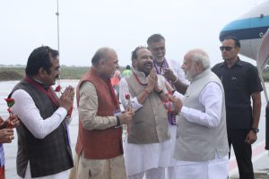 जबलपुर। शहडोल जिले से राष्ट्रीय सिकल सेल उन्मूलन मिशन और आयुष्मान पीवीसी कार्ड वितरण कार्यक्रम का शुभारम्भ करने मध्यप्रदेश आये प्रधानमंत्री श्री नरेन्द्र मोदी का आज यहाँ डुमना विमानतल पहुँचने पर आत्मीय स्वागत किया गया। प्रधानमंत्री मोदी का भारतीय वायुसेना के विशेष विमान द्वारा दोपहर लगभग सवा दो बजे डुमना विमानतल आगमन हुआ। विमानतल पर प्रधानमंत्री की आगवानी मिनिस्टर इन वेटिंग प्रदेश के लोक निर्माण मंत्री एवं जबलपुर जिले के प्रभारी मंत्री गोपाल भार्गव ने की।