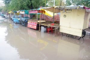 उज्जैन। महाकाल मंदिर के आसपास निर्माण कार्यों के चलते चारों तरफ का हिस्सा खोदकर पटक दिया है और समय सीमा में काम नहीं हो पाए हैं जिसके चलते कल रात से शुरू हुई बारिश के बाद आज सुबह चौराहों तरफ तालाब और कीचड़ फैल गया है और लोगों का मंदिर तक जाना मुश्किल हो रहा है। महाकालेश्वर लोक के निर्माण के बाद फेज 2 के काम शुरू हो गए हैं और इसके चलते महाकाल मंदिर के आसपास के चारों तरफ के मार्ग को खोदकर पटक रखा है और मंदिर के अंदर भी टनल का निर्माण चल रहा है।