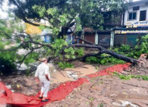 शहर में कई पेड़ों ने दम तोड़ा, जेलरोड का रास्ता ही बंद
