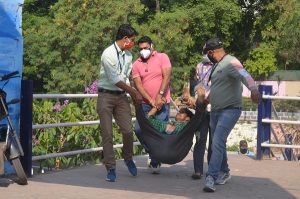 गांधी रोड थाने स्थित नगर निगम की दुकानों के सामने करीब 35 साल का एक शख्स बीते दो तीन दिन से देखा जा रहा था। पुलिस ने पहले उसे समझाया कि तुम जो भी मास्क पहनो। आज वह बिना मास्क दिखा तो पुलिस वाले उसे अस्थाई जेल पहुंचाने के लिए टांगा टोली कर ले गए। इस दौरान बिना मास्क वाले शख्स ने खूब नाटक किए। पत्थर से खुद को सिर भी फोडऩे लगा, लेकिन पुलिस उसे थाने ले गई।