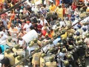 बीजेपी के ‘नबन्ना मार्च’ के दौरान हावड़ा के संतरागाछी में कार्यकर्ताओं को रोकने के लिए पुलिस ने पानी की बौछारों, आंसू गैस का इस्तेमाल करने के साथ-साथ लाठियां भांजी। इसमें बीजेपी प्रदेश उपाध्यक्ष राजू बनर्जी और सांसद ज्योतिर्मय सिंह महतो घायल हो गए। कोलकाता के हेस्टिंग्स इलाके में भी पुलिस ने लाठी-चार्ज किया।
