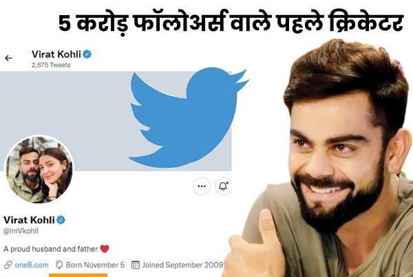 • विराट कोहली पहले क्रिकेटर, जिनके ट्विटर पर हैं 5 करोड़ फॉलोअर्स