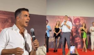 ‘खेल खेल में’ के ट्रेलर लॉन्च में तापसी पन्नू, अक्षय कुमार, वाणी कपूर, एमी विर्क, आदित्य सील, प्रज्ञा जैसवाल और फरदीन खान पहुंचे। फिल्म की पूरी स्टार कास्ट ने इस दौरान खूब मस्ती और बातें कीं। वहीं इस ट्रेलर लॉन्च में अक्षय कुमार सबसे ज्यादा लाइमलाइट में रहे हैं क्योंकि उन्होंने बॉक्स ऑफिस पर कुछ समय से अपनी फ्लॉप हो रही फिल्मों के बारे में बात करते हुए कुछ बातें ऐसी कही जिन्हें सुन कोई भी हैरान हो सकता है। वहीं अक्षय कुमार के इस वायरल को देखने के बाद कुछ लोग उनका सपोर्ट कर रहे हैं तो कुछ लोग हैरान भी है। दरअसल, बात कुछ ऐसी है कि ‘खेल खेल में’ के ट्रेलर लॉन्च के दौरान एक्टर ने कहा कि, ‘लोग ऐसे मैसेज करते हैं जैसे मैं मर गया हूं।’