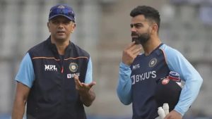 विराट कोहली और राहुल द्रविड़ ने सुरंगा लकमल को उनके बेहतरीन टेस्ट करियर के लिए बधाई दी. बीसीसीआई ने द्रविड़ और विराट कोहली का सुरंगा लकमल से मिलने का वीडियो ट्विटर पर पोस्ट किया. बीसीसीआई ने लिखा, ‘हेड कोच राहुल द्रविड़ और टीम इंडिया के पूर्व कप्तान विराट कोहली ने सुरंगा लकमल को बधाई दी क्योंकि वो इस मैच के बाद इंटरनेशनल क्रिकेट को अलविदा कह देंगे.’ बीसीसीआई के इस वीडियो को फैंस खूब पसंद कर रहे हैं.