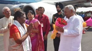राष्ट्रपति मुर्मू की ओर मुखातिब होते हुए बिहार के मुख्यमंत्री ने कहा, ‘आप यहां तीन दिन रहेंगी, जिस दौरान आप कई स्थानों का दौरा करेंगी। हालांकि मैं आपसे हर तीन से चार महीने में एक बार राज्य के दौरे का कार्यक्रम बनाने का आग्रह करूंगा। बिहार आपके गृह राज्य से बहुत दूर नहीं है…यह वह भूमि भी है जिसने देश को उसका पहला राष्ट्रपति (राजेंद्र प्रसाद) दिया।
