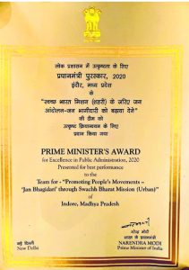 पांच चरणों की कड़ी परीक्षा के बाद टीम इंदौर को प्रधानमंत्री उत्कृष्टता का पुरस्कार मिल पाया