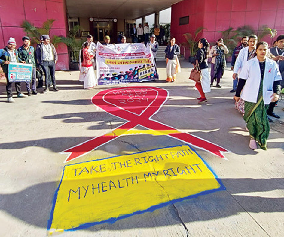 • इंदौर : रेड रिबन और हाथों में बैनर-पोस्टर लेकर निकले डॉक्टर और नर्सिंग के छात्र