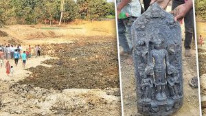 2 दिन पहले बुलडोजर की खुदाई में धरती के नीचे से एक मूर्ति मिली थी. स्थानीय अधिकारियों के मुताबिक भगवान विष्णु की यह मूर्ति 27 किलो की है. मूर्ति में भगवान विष्णु के साथ-साथ माता लक्ष्मी की भी तस्वीर उकेरी गई है. मूर्ति पर कमल का निशान भी है. इतना ही नहीं इस मूर्ति की ऊंचाई 32 ईंच और चौड़ाई 14 ईंच है. किवदंती है कि गणेश नामक मशहूर जमींदार भगवान विष्णु के उपासक थे. उन्होंने यहां पर एक यज्ञ भी कराया था.