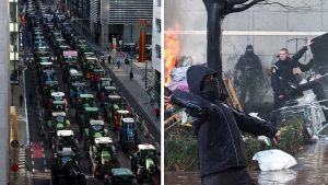 ब्रुसेल्स। यूरोपीय देशों में इन दिनों किसान विरोध प्रदर्शन कर रहे हैं और सड़कों पर उतरे हुए हैं। गुरुवार को यूरोपीय यूनियन की बैठक हुई, जिसमें यूक्रेन को और आर्थिक मदद देने का एलान किया गया। वहीं बेल्जियम की राजधानी ब्रुसेल्स में किसान सड़कों पर उतरे और शहर की कई सड़कों को जाम कर दिया। प्रदर्शनकारी किसानों ने ट्रैक्टर्स से पूरे शहर में मार्च किया और इस दौरान सड़कों पर अंडे फेंके गए, जगह-जगह आगजनी हुई।