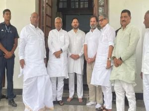 नई दिल्ली: बिहार के मुख्यमंत्री नीतीश कुमार ने बुधवार को कांग्रेस के राष्ट्रीय अध्यक्ष मल्लिकार्जुन खड़गे और राहुल गांधी से मुलाकात की. इस दौरान उनके साथ उपमुख्यमंत्री तेजस्वी यादव और जदयू अध्यक्ष ललन सिंह भी मौजूद रहे. अगले साल होने वाले लोकसभा चुनाव से पहले इन नेताओं की मुलाकात बीजेपी के खिलाफ एकजुट विपक्षी मोर्चे के गठन के लिहाज से काफी अहम मानी जा रही है. सूत्रों की मानें तो जदयू और राजद चाहते हैं कि नीतीश कुमार की भूमिका यूपीए में और बढ़े. खबरें यह भी आ रही हैं कि बिहार के मुख्यमंत्री नीतीश कुमार को संयुक्त प्रगतीशील गठबंधन का संयोजक बनाया जा सकता है.