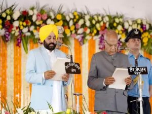 पीएम मोदी ने सीएम भगवंत मान को बधाई देते हुए कहा, ‘‘पंजाब के मुख्यमंत्री के रूप में शपथ लेने पर भगवंत मान को बहुत बधाइयां। पंजाब के विकास और राज्य की जनता के कल्याण के लिए हम साथ मिलकर काम करेंगे।‘‘ पंजाब के राज्यपाल बनवारी लाल पुरोहित (Banwari Lal Purohit) ने राज्य के एसबीएस (शहीद भगत सिंह) नगर जिले में स्थित शहीद भगत सिंह के पैतृक गांव खटकड़ कलां में आयोजित समारोह में मान को पद और गोपनीयता की शपथ दिलाई। शपथ ग्रहण समारोह में सिर्फ मान ने ही शपथ ली।