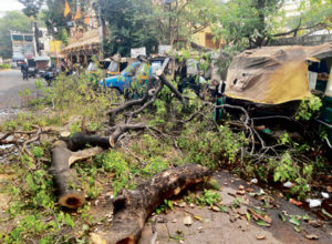 नगर निगम (Nagar Nigam) अधिकारियों के मुताबिक भंवरकुआं रोड पर मंदिर के समीप पुराने पेड़ के कुछ हिस्से खड़े वाहनों पर गिर गए थे। इसके साथ ही अन्य स्थानों पर भी पेड़ के हिस्से और टहनियां गिरने की शिकायतें देर रात तक आती रहीं, जिसके चलते आज सुबह उद्यान विभाग की टीमों ने अलग-अलग शिकायत वाले क्षेत्रों में पहुंचकर डंपरों में टूटे पेड़ों के हिस्से भरकर ट्रेंचिंग ग्राउंड पहुंचाए। सबसे ज्यादा एरोड्रम क्षेत्र के मुख्य मार्ग पर पेड़ों के हिस्से गिरने की शिकायतें आई थीं। इनमें कई जगह बिजली की लाइनों के आसपास भी हिस्से गिरने के कारण बिजली गुल होने की शिकायतें थीं।