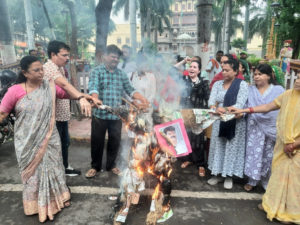 इंदौर। दुष्कर्म के आरोप में फंसे वार्ड क्रमांक 82 के भाजपा पार्षद शानू शर्मा (BJP councilor Shaanu Sharma) के खिलाफ आज महिला कांग्रेस (Women’s Congress) ने राजबाड़ा चौक (Rajbara Chowk) पर प्रदर्शन किया और पूतला फूंका (effigy burnt)। दोपहर में पूर्व महिला कांग्रेस अध्यक्ष डीसीपी ऑफिस पर जाकर इस मामले में लेटलतीफी करने वाले दोषी पुलिसकर्मियों पर कार्रवाई की मांग करेंगी।
