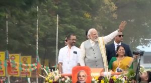 त्रिशूर: केरल (Kerala) के त्रिशूर (Thrissur) में प्रधानमंत्री नरेंद्र मोदी (Prime Minister Narendra Modi) ने रोड शो (Road Show) किया। रोड शो दौरान लोगों की भारी भीड़ (huge crowd) देखी गई। पीएम मोदी पर लोगों ने फूलों की बारिश की। प्रधानमंत्री मोदी ने भी लोगों का अभिवादन स्वीकार किया। इस मौके पर प्रधानमंत्री नरेंद्र मोदी ने भारतीय जनता पार्टी (BJP) के महिला सम्मेलन (women’s conference) में महिलाओं की एक विशाल सभा को संबोधित किया। उन्होंने कहा कि मैं आभारी हूं कि ‘स्त्री शक्ति’ मुझे आशीर्वाद देने के लिए बड़ी संख्या में यहां एकत्र हुई हैं। मोदी ने कहा कि केरल की बेटियों ने देश की आजादी में महत्वपूर्ण भूमिका निभाई है। पीटी ऊषा हो या बॉबी जार्ज हो ये देश की महिलाओं के लिए प्रेरणा हैं।