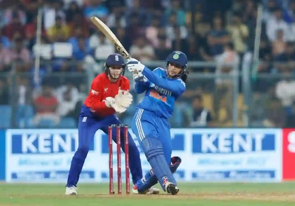 भारतीय टीम की शुरुआत कुछ खास नहीं रही और 11 के स्कोर पर ही टीम को शफाली वर्मा (6) के रूप में पहला झटका लगा। हालांकि, इसके बाद टीम संभल गई और अनुभवी मंधाना और जेमिमा रोड्रिगेज (29) ने टीम को मजबूती से संभाल लिया। दूसरे विकेट के लिए दोनों ने 54 गेंदों में 57 रन की अहम साझेदारी निभाई। तीसरे विकेट के लिए मंधाना और दीप्ति शर्मा (12) ने 26 रन जोड़े।