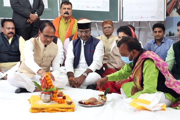 मुख्यमंत्री श्री चौहान आज एम्स के पास भोपाल मेट्रो रेलवे परियोजना में बनने वाले 426 करोड़ 67 लाख रूपए की लागत से बनने वाले आठ रेलवे स्टेशनों का भूमि-पूजन कार्यक्रम को संबोधित कर रहे थे। मुख्यमंत्री श्री चौहान ने कहा कि नगरीय विकास एवं आवास मंत्री श्री सिंह बात कम, काम ज्यादा करते हैं। कार्यक्रम में जन-प्रतिनिधियों और अधिकारियों के अलावा बड़ी संख्या में नागरिक उपस्थित थे।