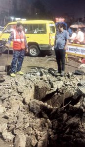 इंदौर। अग्रसेन चौराहे पर सडक़ धंसने के कारण बने बड़े गड्ढे पर नगर निगम द्वारा चेंबर बनाने का काम शुरू किया गया। लगातार इस तरह के गड्ढे उभरकर सामने आने का सिलसिला जारी है। सपना संगीता रोड पर स्थित अग्रसेन चौराहे पर कल एक बड़ा और गहरा गड्ढा हो गया था, जिसे भरने के लिए निगम की टीम कल शाम को सक्रिय हुई और रात में काम शुरू किया गया। जिस स्थान पर यह गड्ढा हुआ था, उसके पास के चेंबर का निर्माण नए सिरे से शुरू किया गया है। निगम के अधिकारियों का कहना है कि ड्रेनेज लाइन डालते समय जो चेंबर बनाए गए, उस समय पर रेस्टोरेशन का काम बराबर नहीं किया गया। इसके चलते हुए यह स्थिति बनी है। अब नगर निगम रातोरात काम करते हुए इस गड्ढे को समाप्त करने में लगा है। निगम के अधिकारियों का कहना है कि काम जल्द ही पूरा हो जाएगा।