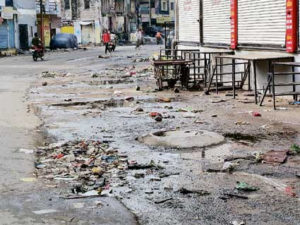 ई जगह खोदी गई सडक़ें और गड््ढे मुसीबत बने। वहीं चंद्रभागा में नाला भरने के कारण कचरा और मलबा भी सडक़ों पर जगह-जगह पड़ा दिखा। सबसे ज्यादा खराब स्थिति मधुमिलन चौराहे की हुई।