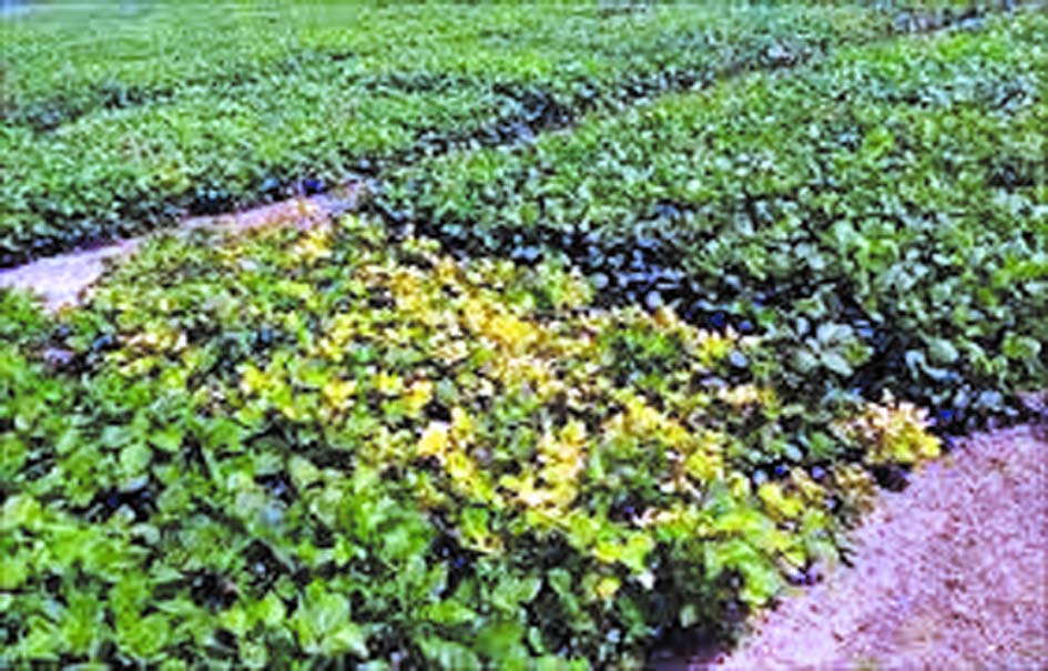 इंदौर, उज्जैन, ग्वालियर, विदिशा सहित प्रदेश के कुछ क्षेत्रों में पीला मोजेक वायरस या सोयाबीन मोजेक वायरस देखा जा रहा है। इससे पत्तियों का पीलापन बढ़ता है और पत्तियां सिकुड़कर टेढ़ीमेढ़ी हो जाती है। इसे सफेद मक्खी अन्य पौधों तक पहुंचा देती है, जिससे फसल खराब होती है। ऐसे पौधों को तुरंत उखाड़कर फेंक देना चाहिए। साथ ही सफेद मक्खी से बचाने के लिए पीला स्टिकी टैप लगाया जाना चाहिए। इससे बचने के लिए थायमिथोक्सम व लैम्बड़ा सायहेलोथ्रिन का छिड़काव करना चािहिए।