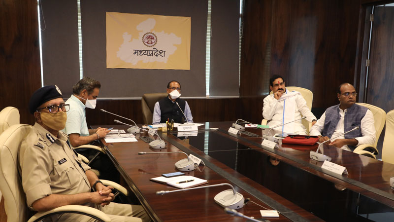 मुख्यमंत्री श्री चौहान मंत्रालय में वीडियो कान्फ्रेंसिंग के माध्यम से प्रदेश में कोरोना की स्थिति एवं व्यवस्थाओं की समीक्षा कर रहे थे। बैठक में गृह मंत्री डॉ. नरोत्तम मिश्र, चिकित्सा शिक्षा, भोपाल गैस त्रासदी राहत एवं पुनर्वास मंत्री श्री विश्वास सारंग, मुख्य सचिव श्री इकबाल सिंह बैंस, डीजीपी श्री विवेक जौहरी, प्रमुख सचिव श्री फैज अहमद किदवई उपस्थित थे।