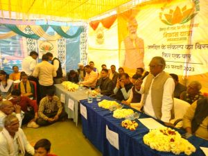 राज्य शासन के निर्देशानुसार गुना जिले में 05 फरवरी से 25 फरवरी तक विकास यात्राओं का आयोजन व्यापक स्तर पर किया जा रहा है। इसी क्रम में आज विधानसभा गुना के ग्राम पंचायत बरखेडाहाट में विकास यात्रा का शुभारंभ कलश पूजन एवं कन्या पूजन के साथ विधायक गोपीलाल जाटव के मुख्यातिथ्य में किया गया। इस अवसर पर संत रविदास जयंती के अवसर पर संत रविदास जी के चित्र पर मार्ल्यापर्ण कर उपस्थितजनों को संत रविदास जयंती की बधाई एवं शुभकामनाएं दी गयीं। कार्यक्रम के शुभारंभ में मुख्य कार्यपालन अधिकारी जनपद पंचायत आरोन संजीव श्रीवास्तव द्वारा अतिथियों का स्वागत भाषण दिया गया एवं कार्यक्रम का उद्देश्य बताया गया और विकास यात्रा आज किन-किन मार्गो से होकर किन गांवों में जायेगी इसकी विस्तृत जानकारी दी गयी। इस अवसर पर मुख्य अतिथि विधायक गोपीलाल जाटव द्वारा प्रदेश सरकार द्वारा चलायी जा रही विभिन्न योजनाओं के बारे में उपस्थितजन को जानकारी दी और कहा कि हमारी सरकार हर वर्ग की चिंता कर रही है और उन्हें लाभ पहुंचा रही है। विकास यात्रा में उपस्थित हितग्राहियों को स्वीकृति पत्र वितरित किये गये एवं 68 लाख रूपये के निर्माण कार्यो का लोकार्पण किया गया। इस दौरान उन्होंने ढोल मंजीरा एवं क्रिकेट किट प्रदाय करने भी घोषणा की गयी। आज इस कार्यक्रम में भाजपा अध्यक्ष धर्मेन्द्र सिकरवार, अपर कलेक्टर श्री आदित्य सिंह, मुख्य कार्यपालन अधिकारी जनपद आरोन संजीव श्रीवास्तव, तहसीलदार संदीप श्रीवास्तव सहित अन्य जनप्रतिनिधियों में वीरेन्द्र धाकड़, गोविंद शर्मा सहित संत भी उपस्थित थे।